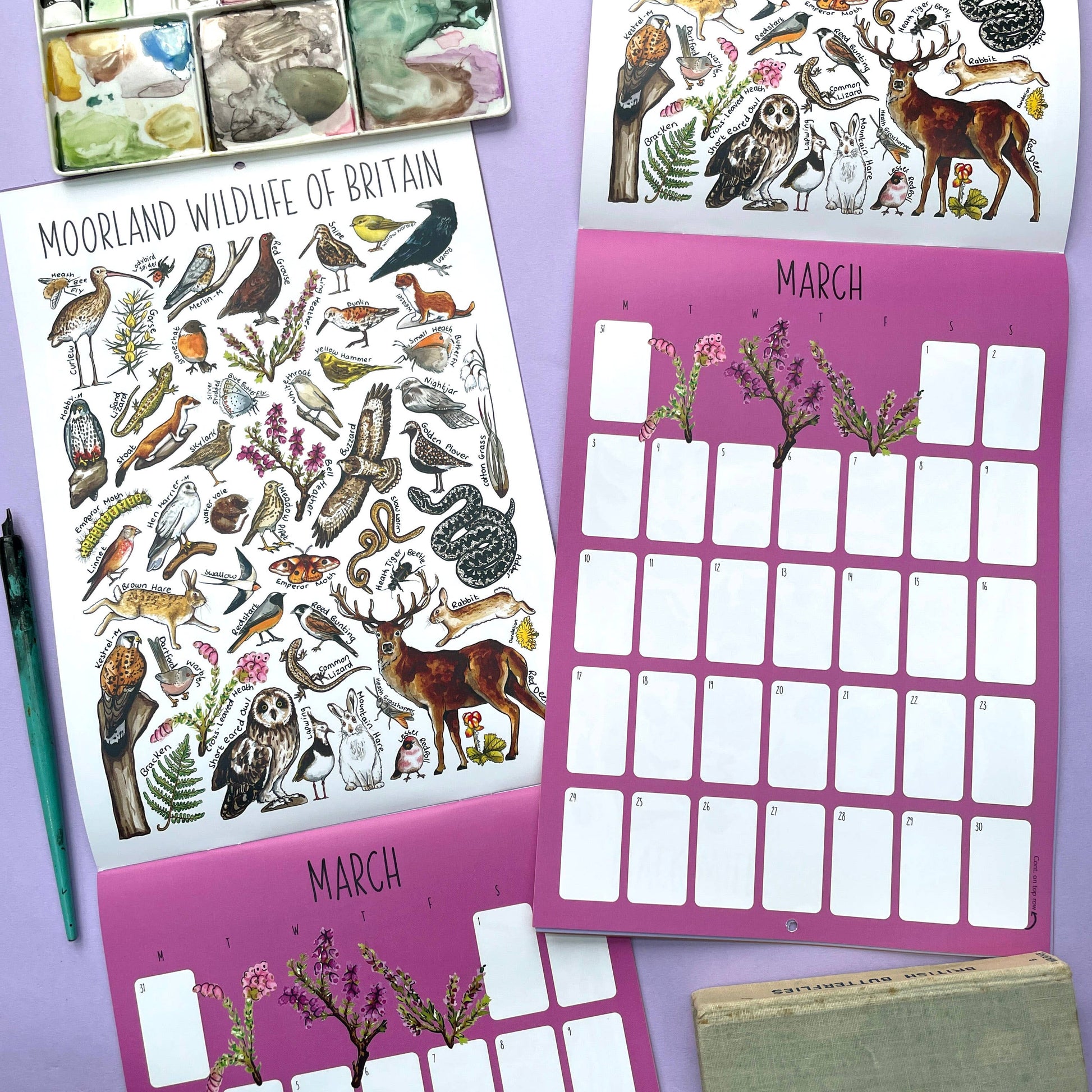 A beautiful 28 page Wildlife of Britain 2025 wall calendar, featuring stunning hand painted watercolour wildlife paintings of British wildlife.