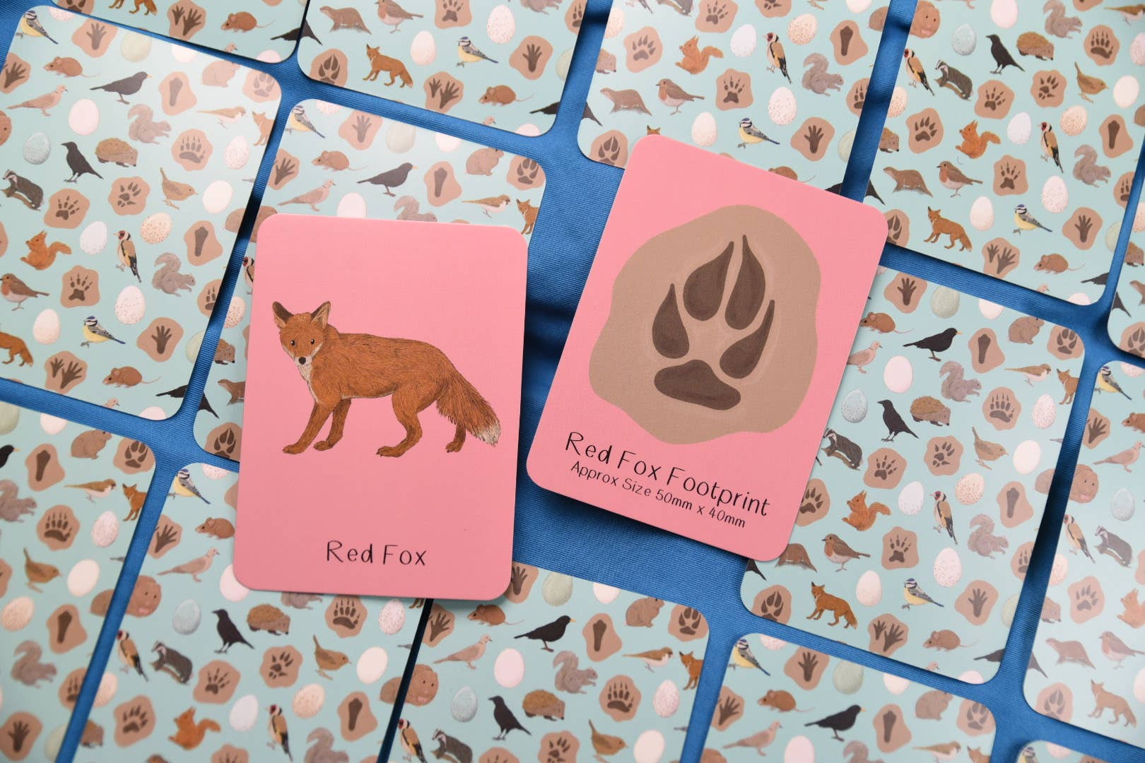 This set of cards has a selection of British animals, birds, prints and eggs on the back and each pair has a lovely bright matching background. The animal and bird cards include their names, and the footprint and egg cards include their names as well as a rough size.