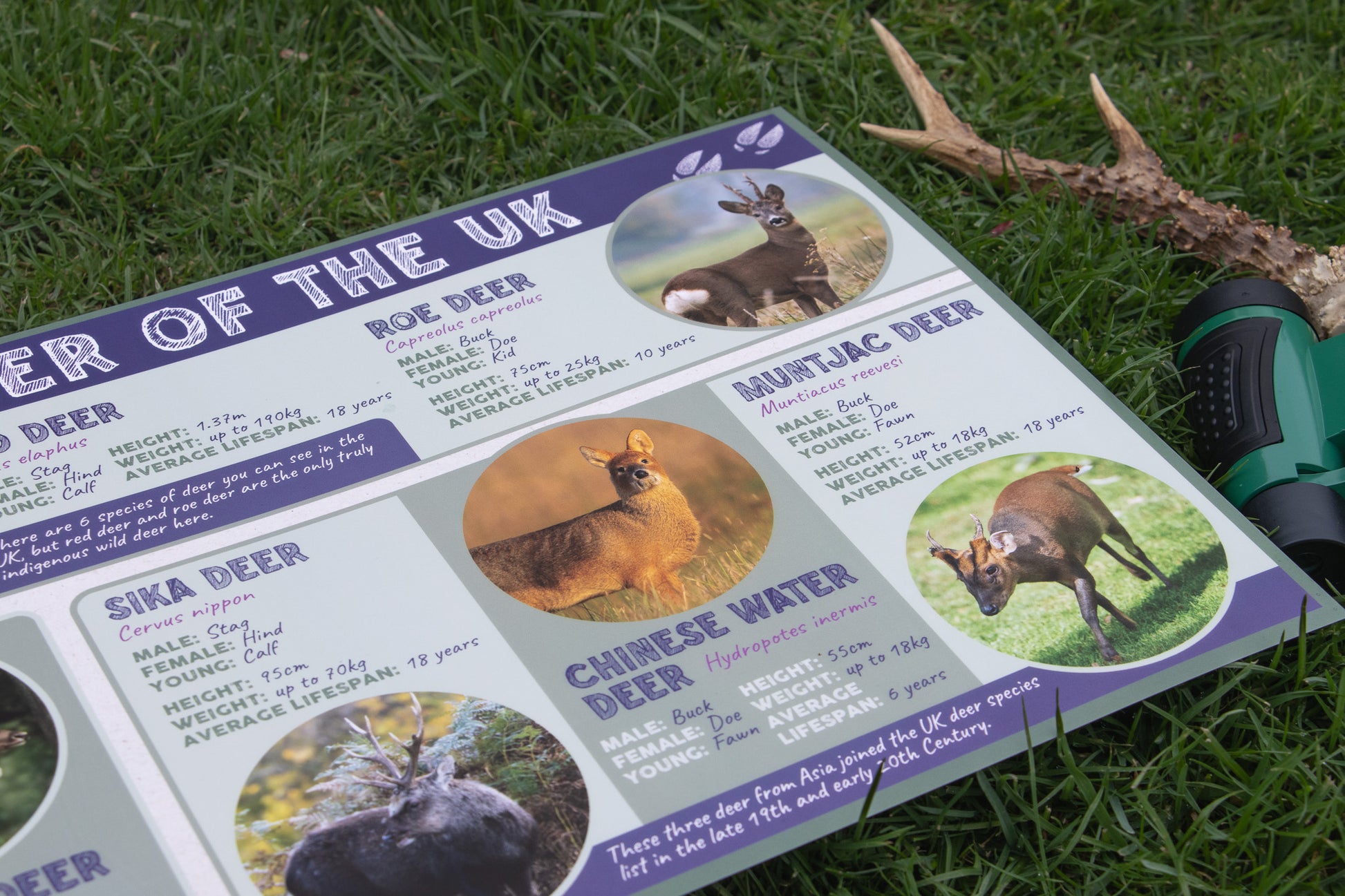 Explore the six deer species of the UK with this high quality, handy A3 sized wall poster. Simple facts and bright images make this a great introduction to recognising our resident deer.